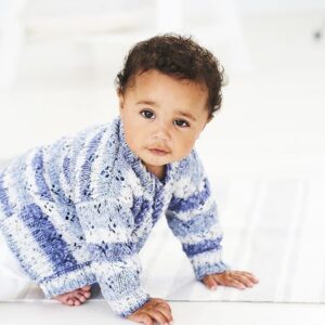 Bambino Prints is a lovely print yarn for babies in muted shades. The yarn is beautifully smooth and comfy for baby, is anti-pilling and of course machine washable, so super practical.