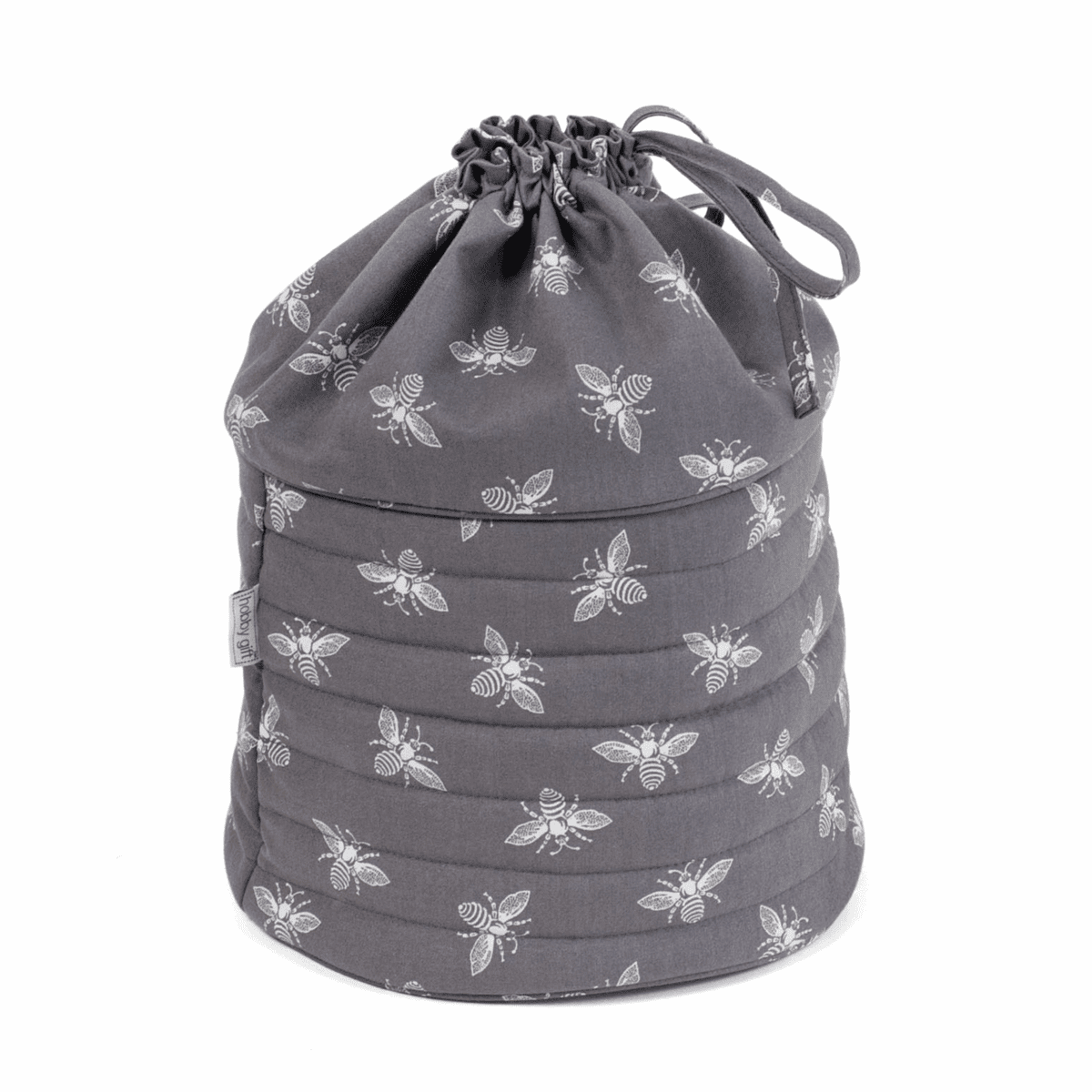 Craft Bag: Drawstring Bag: Grey Bees