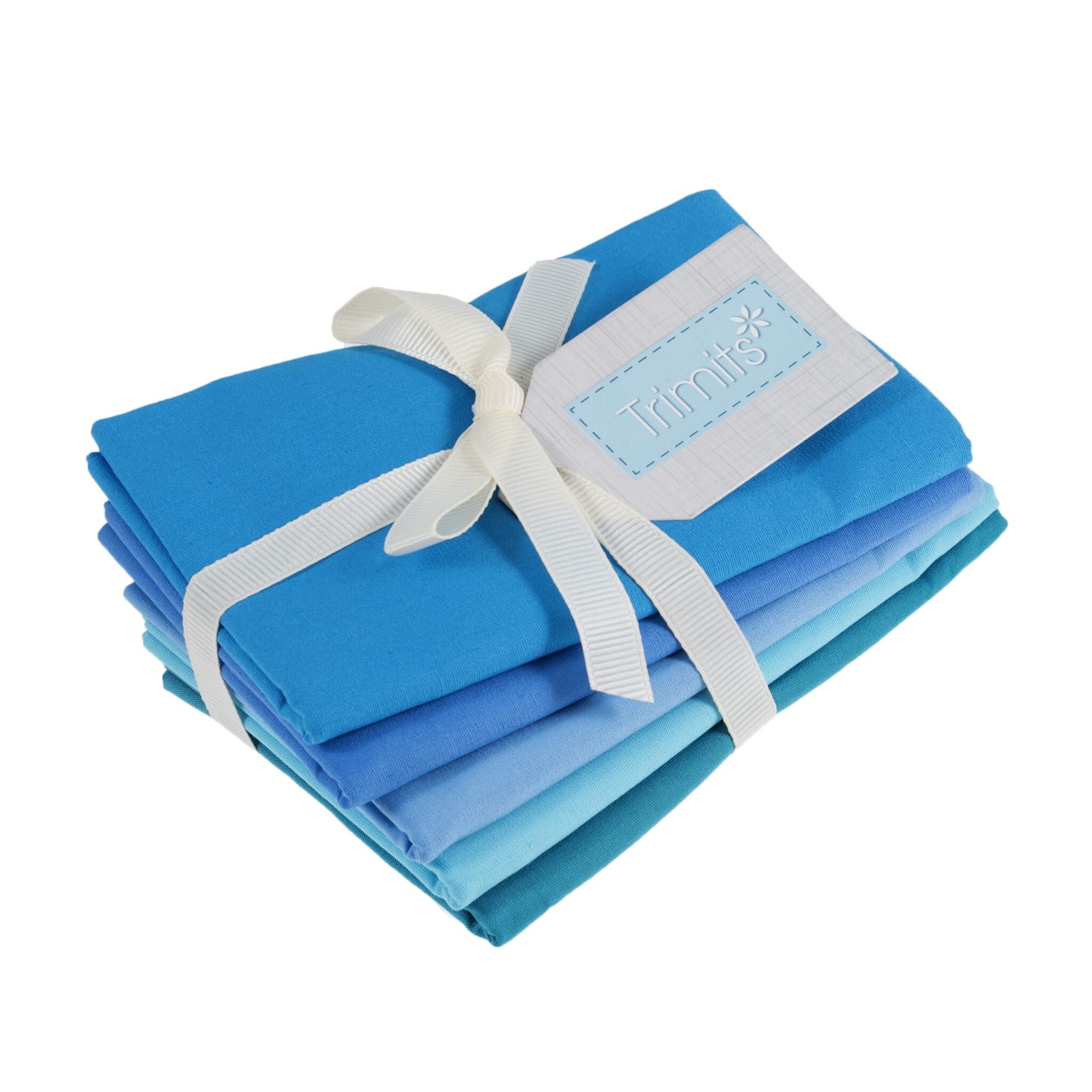 Pack of 5 cotton fat quarters measuring 54 x 45cm in a mix of blue and turquoise shades. Can be used together or mixed with other packs in a variety of quilting projects. Great for making face masks. 100% cotton. Wash at 40 degrees.