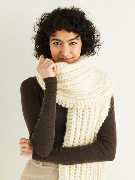 Exaggerated silhouettes are incredibly fashionable so this super chunky scarf from our Arctic Adventure collection will tick your on-trend box in no time. Use brioche stitch in Sirdar Adventure to create the stunning rib texture, then wrap-up and you’ll be ready for your own winter adventures.