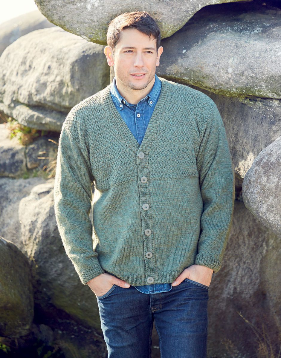 Man’s V Neck Cardigan, knitted in Hayfield Bonus Double Knitting a high quality Premium Acrylic. Choose your favourite shade from the wide range.