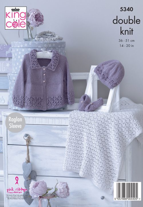 Matinee Jacket, Hat, Shoes & Blanket Knitted in Finesse Cotton Silk DK-Printed pattern in the post