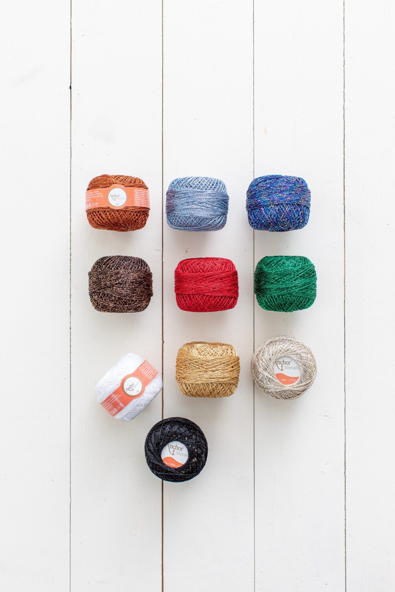 Anchor Metallic and Metallic Fine offer you a vast selection of shiny metallic colours that can be used for clothing, fashion accessories and home decoration. 80% viscose, 20% polyester. Wash at 30?C or dry-clean, do not bleach or tumble dry, cool iron.