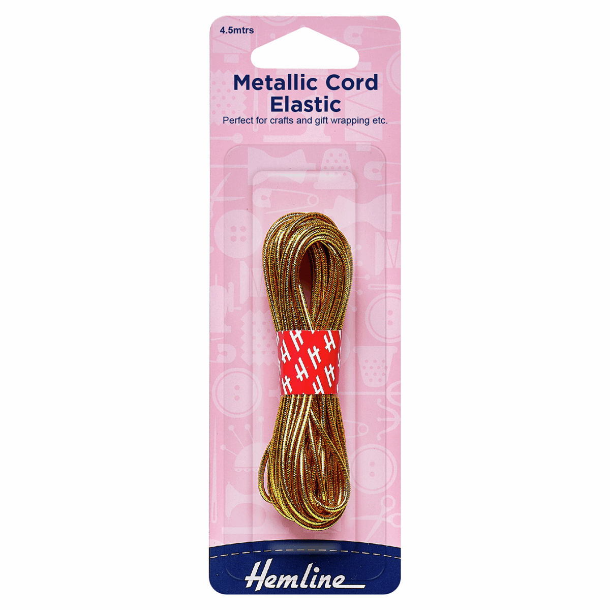 Narrow elastic cored with an attractive metallic finish. Popular in crafting and for decorating garments and accessories. Hand wash only and dry naturally. Gold, 1.3mm x 4.5m.
