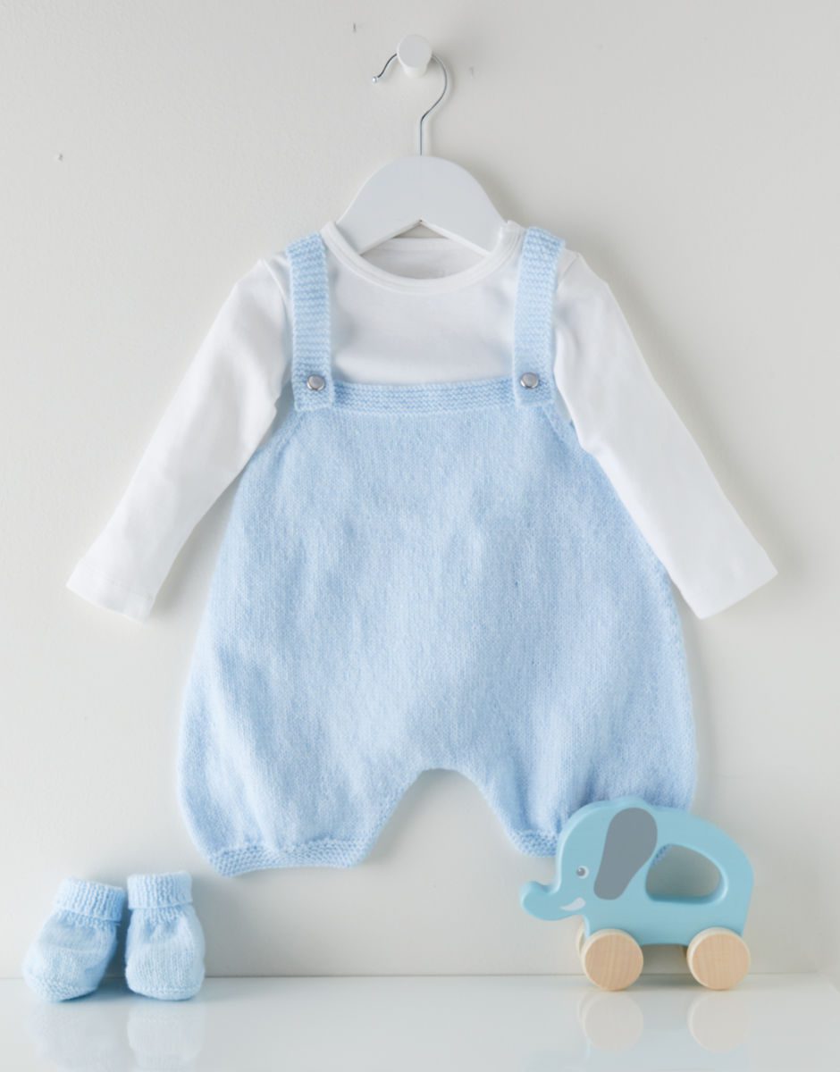 Classic and cosy, this traditional romper and booties set is sure to cause spontaneous snuggling. Garter stitch straps are fastened with easy-peasy buttons and booties finish off the look to keep their little tootsies warm.