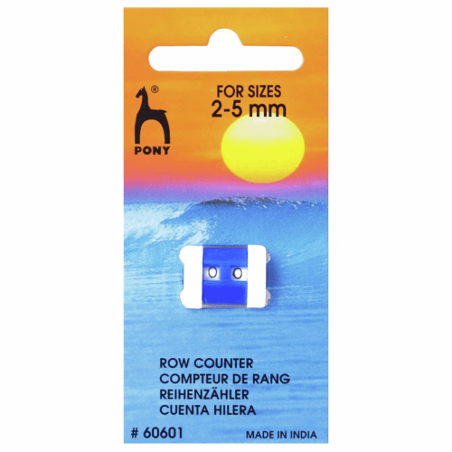 Keeps track fo the number of rows knitted and slides easily onto the needle. Counts up to 99 rows before re-set to 0. Made from plastic. For sizes 2 – 5mm.