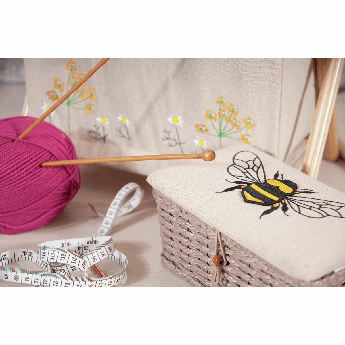 Sewing Box (S): Woven Basket: Linen Bee