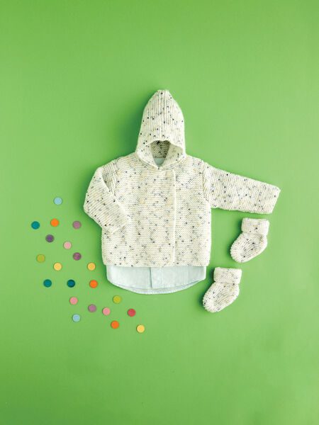 Simple garter stitch makes this hooded jacket and bootie set for boys and girls an easy project for you to knit again and again in any of the playful dotty shades of Baby Bonus Spots. Knitting Level: Easy
