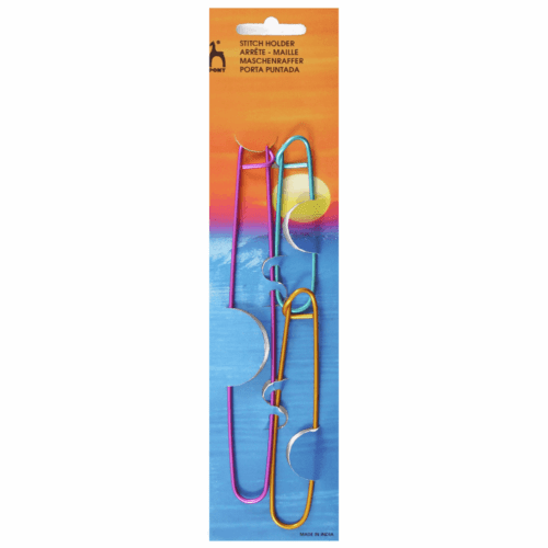 Essential knitting tool used to separate stitches when knitting collars, cable patterns or when using different yarns. Hold stitches while knitting project is not in use and stop them from sliding off the needles. Pony aluminium stitch holders close like safety pins and the secure locking design makes it easy to hold stitches without snagging your knit.