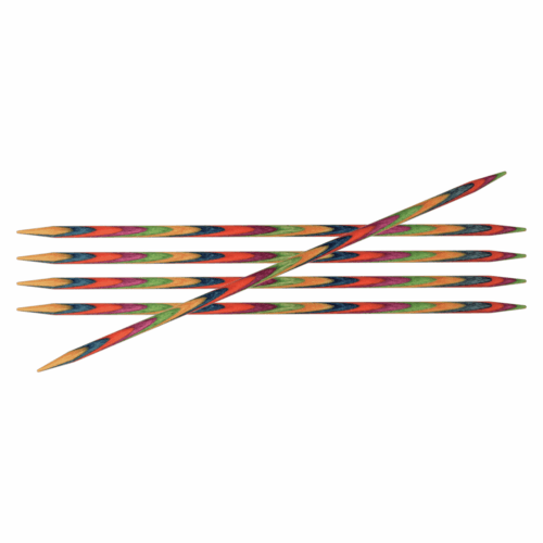 These popular multi-coloured needles are made from compact laminated Birchwood and provide a strong and durable finish. The smooth and sharp tapered tips are ideal for creating tubes of knitting such as socks, gloves, hats and scarves etc. Set of 5.